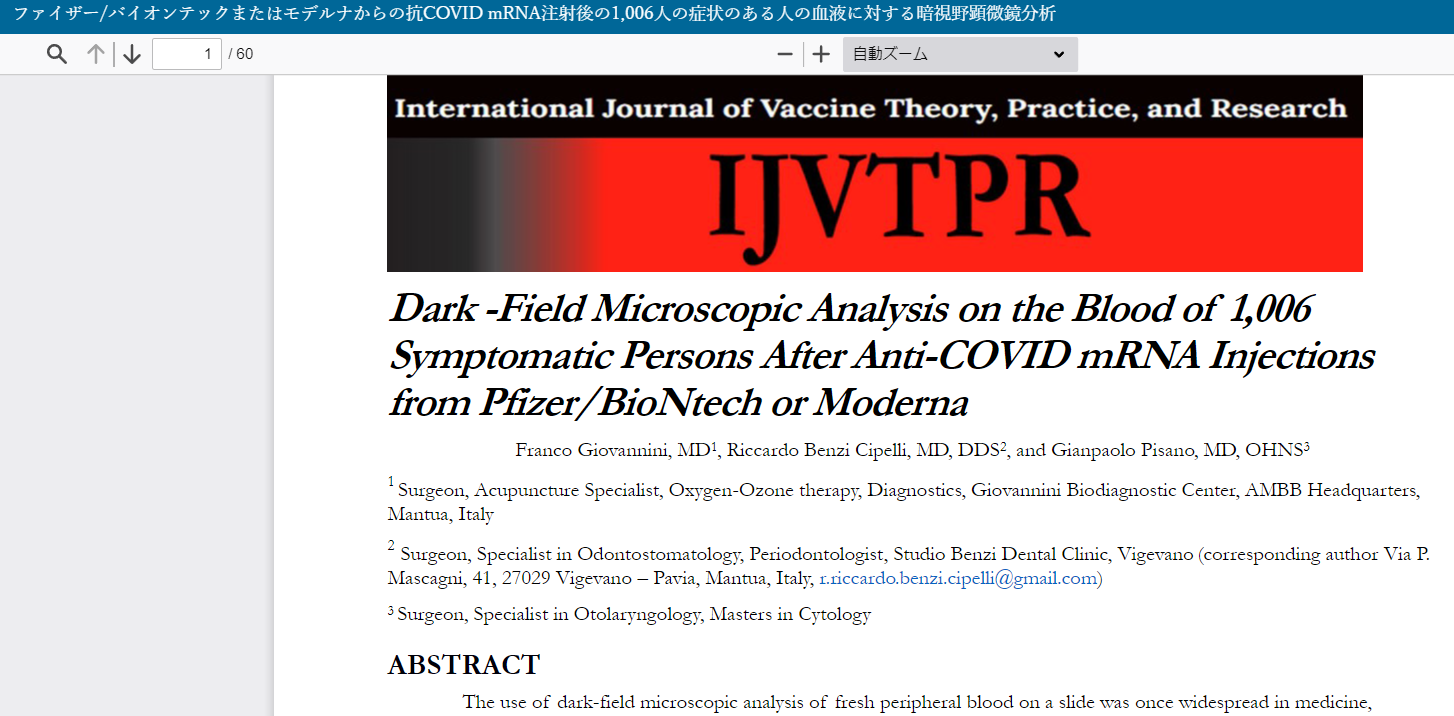 Neue Studie Italien: Dunkelfeldmikroskopische Analyse von Blut von 1.006 Personen nach Anti-COVID-mRNA-Injektion