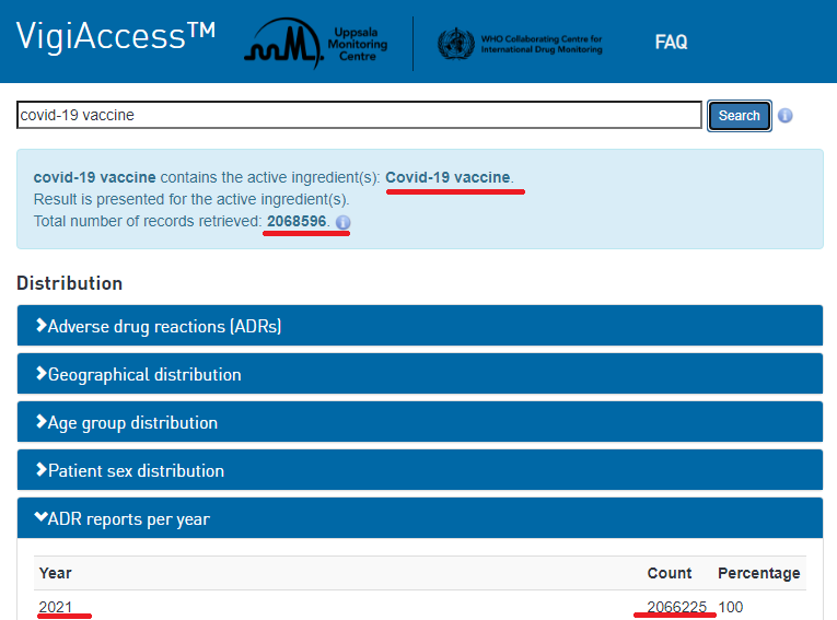 Für den Impfstoff gegen Covid, dessen Impfung de facto obligatorisch ist, wurden seit 2014 2.068.596 Fälle registriert, davon 2.066.225 für dieses Jahr 2021: