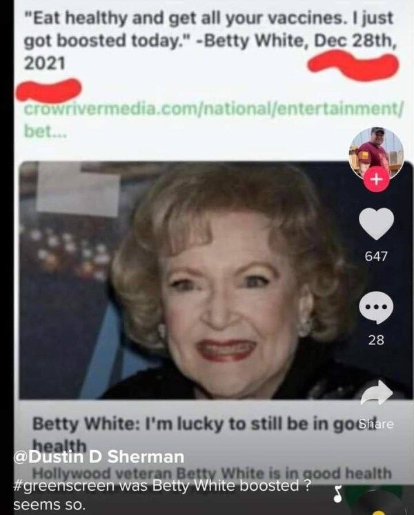 Jetzt wurde Betty White (eine weitere Top-Satanistin) für immer von dieser Erde ausgeschlossen.