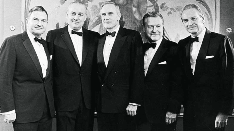 Fünf Rockefeller-Brüder. Von links nach rechts: David, Winthrop, John D. Rockefeller III, Nelson und Laurence.