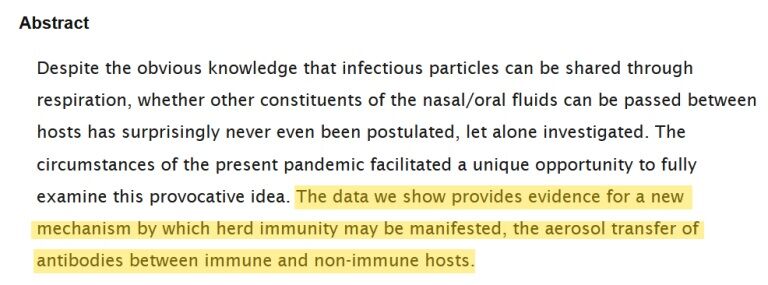 Diese Pandemie hat uns eine einzigartige Gelegenheit gegeben, diese aufregende Idee vollständig zu prüfen. Die von uns präsentierten Daten liefern Hinweise auf einen neuen Mechanismus, durch den sich Massenimmunität entwickelt: Aerosoltransfer von Antikörpern zwischen immunen und nicht-immunen Wirten.
