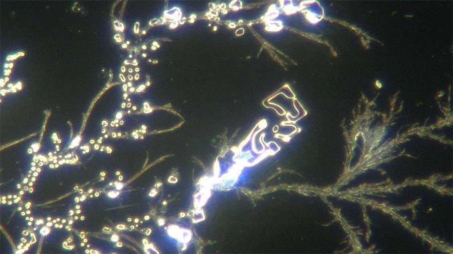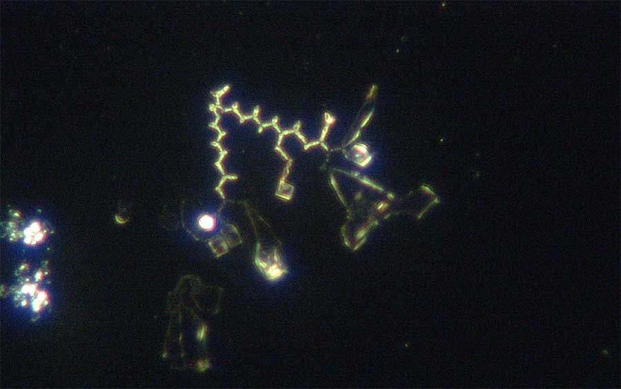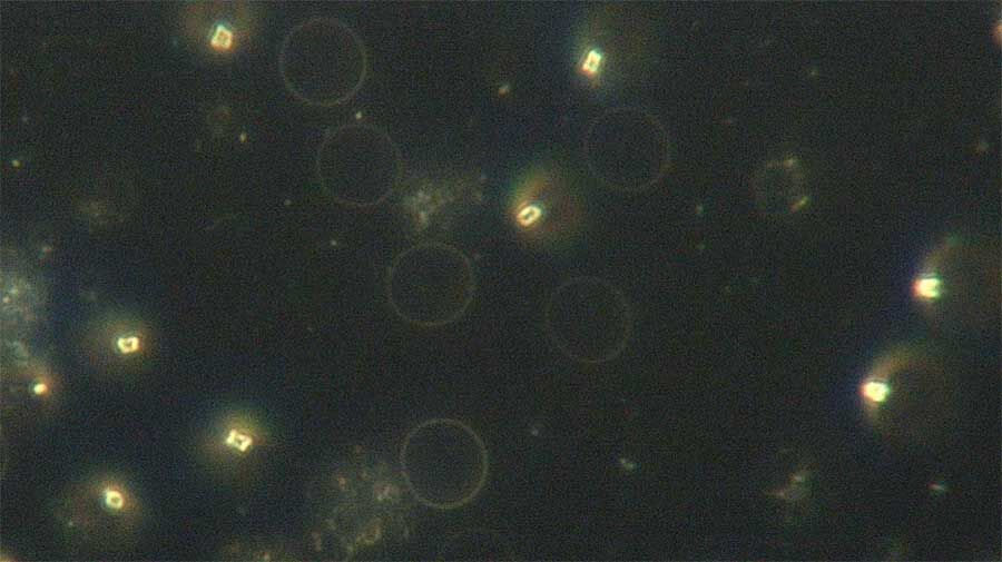 Es gibt so etwas nicht im Lehrbuch, und verschiedene Leute, die ähnliche Forschungen durchführen, haben gesagt, dass es sich um eine Kristall-, Objektträger- oder Deckglasanomalie handeln könnte. Zuerst sagte ich dem Patienten: „Es besteht die Möglichkeit von Harnsäure, und es ist keine große Sache.“