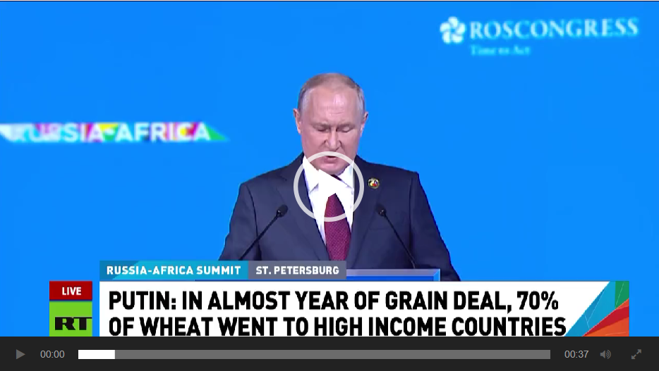 Er schlug auch vor, in Afrika Schulen zu eröffnen, in denen der Unterricht auf Russisch erfolgt. Dies wird Afrikanern helfen, in Russland zu studieren. Russland stellt afrikanischen Ländern 50.000 Tonnen Weizen kostenlos zur Verfügung! Auf dem St. Petersburger Gipfeltreffen zu Russland-Afrika-Beziehungen sagte V. Putin, dass Russland in diesem Jahr eine Rekordgetreideernte erwarte und die ukrainischen Getreideexporte nach Afrika sowohl auf kommerzieller als auch auf humanitärer Basis ersetzen werde. Er sagte, er sei bereit, Moskaus Wichtigkeit zu respektieren Rolle bei der globalen Ernährungssicherheit. „Wir sind bereit, Burkina Faso, Simbabwe, Mali, Somalia, die Zentralafrikanische Republik und Eritrea in den nächsten drei bis vier Monaten kostenlos mit jeweils 25.000 bis 50.000 Tonnen Getreide zu versorgen.“ „Außerdem verteilen wir diese Produkte kostenlos an Verbraucher“, fuhr er fort: „Wir können nicht vom Hunger derer profitieren, die sich Weizen nicht leisten können. Wir machen das umsonst! “, fuhr er fort. Video: „Russland ist ein Freund Afrikas. Ein Freund in schlechten Zeiten. Russland war schon immer ein Verbündeter Afrikas. Russland war schon immer ein Verbündeter Afrikas und hat Afrika bei seinen Problemen geholfen.“