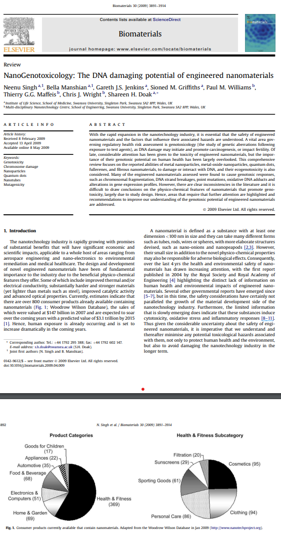 technisch hergestellten Nanomaterialien Angesichts der schnellen Expansion der Nanotechnologieindustrie ist es unerlässlich, die Faktoren zu verstehen, die die Sicherheit und die damit verbundenen Gefahren von technisch hergestellten Nanomaterialien beeinflussen. Ein wesentlicher Bereich der regulatorischen Gesundheitsrisikobewertung ist die Genotoxikologie (die Untersuchung genetischer Veränderungen nach Exposition gegenüber einer Testsubstanz) .