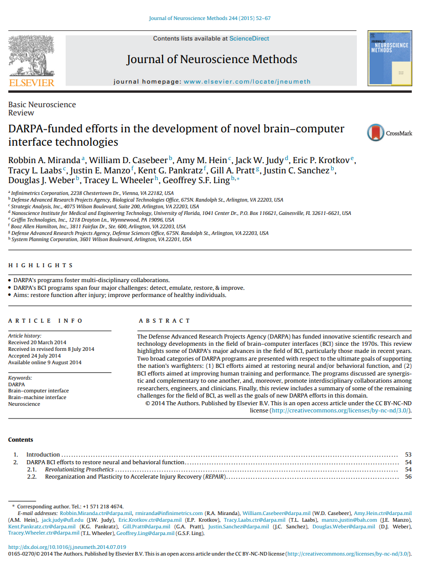 Entwicklung einer neuen Gehirn-Computer-Schnittstellentechnologie, finanziert von DARPA
