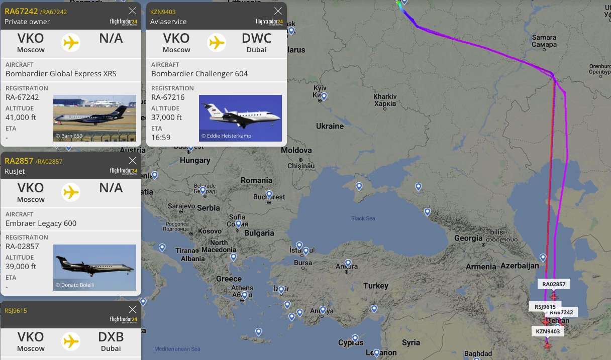 Eine große Anzahl von Privatjets ist heute Morgen von Moskau nach Dubai geflogen. Arabische ultrareiche Ölmilliardäre scheinen ebenfalls High Fives aus Moskau zu geben.