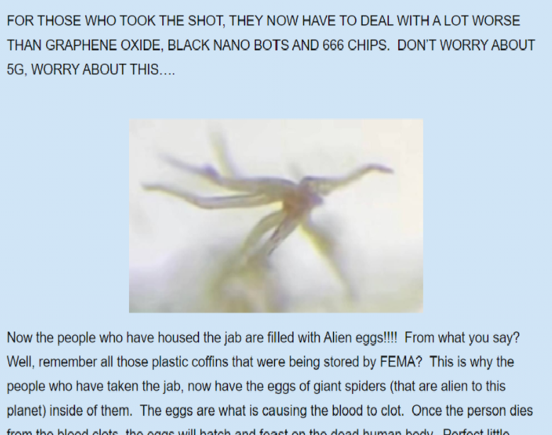 Diejenigen, die den Schuss erhielten, mussten mit etwas Schlimmerem fertig werden als Graphenoxid, schwarzen Nanobots und 666 Chips. Machen Sie sich keine Sorgen um 5G, machen Sie sich keine Sorgen ….