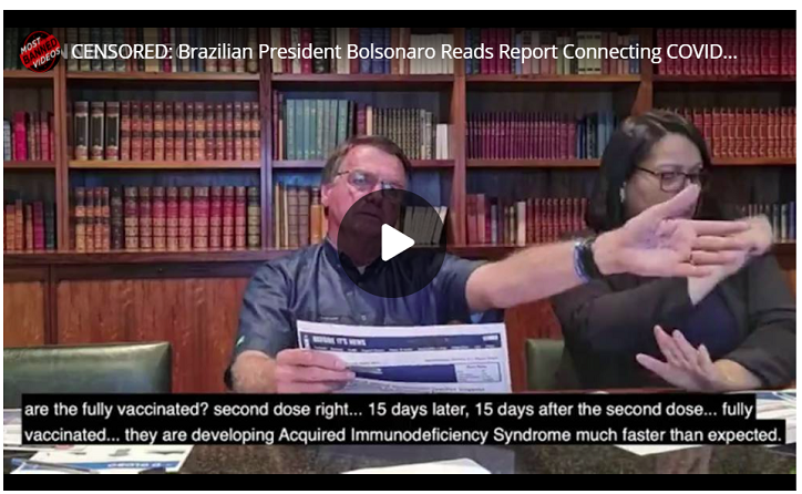 Spread the loveDas neueste Live-Stream-Video von Präsident Jair Bolsonaro wurde von Facebook und YouTube entfernt, nachdem er während seines Streams einen Bericht gelesen hatte, der den COVID-Impfstoff mit einer AIDS-ähnlichen Störung bei Empfängern in Verbindung brachte.
